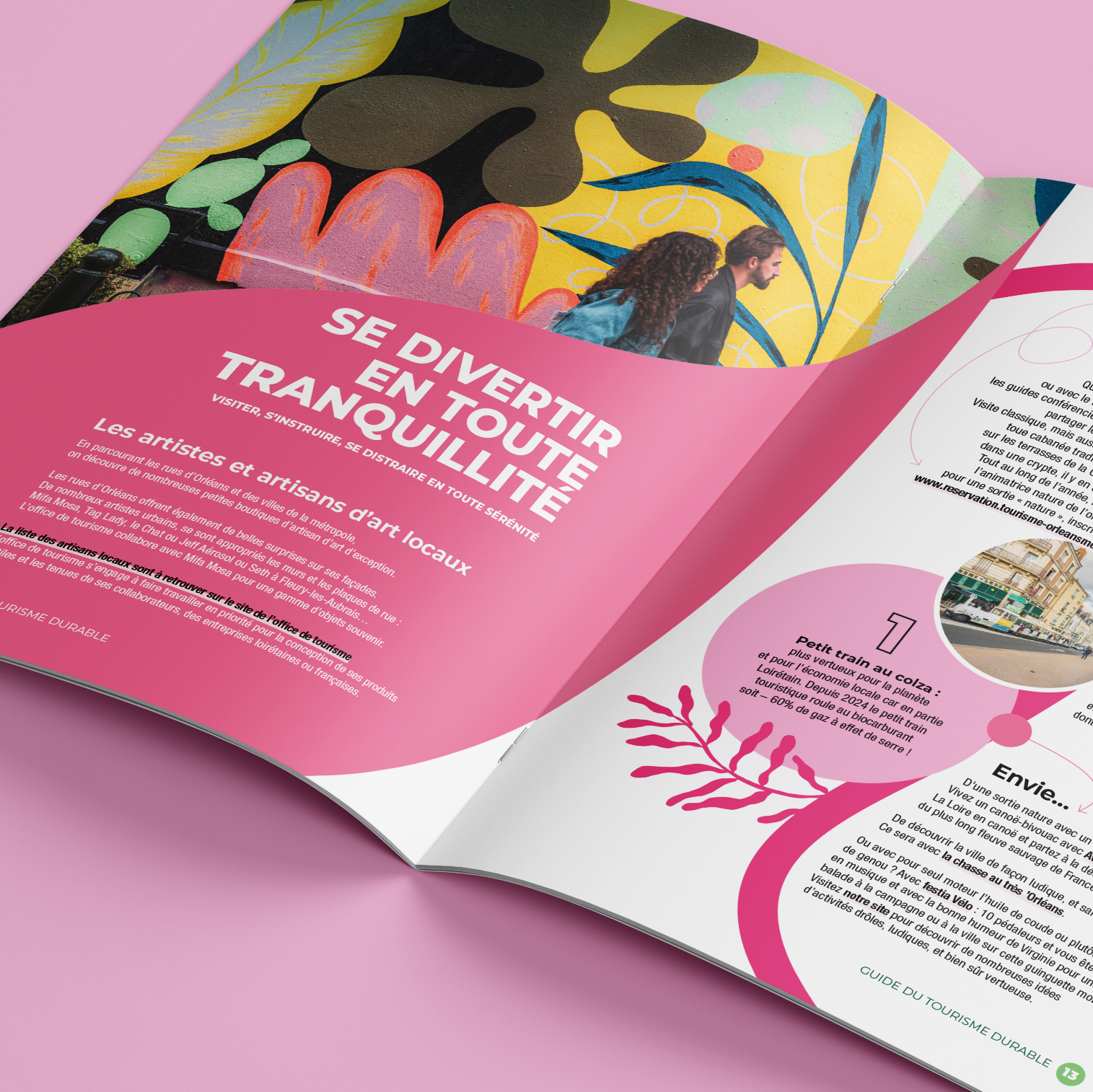 Désiré par l’Office de Tourisme Orléans Val de Loire, ce support se veut respectueux de son environnement, aussi bien dans le fond que dans sa forme. Pour traiter au mieux les contenus présents au sein du guide (déplacements, restauration, hébergements, visites…), Women and Men a ainsi proposé une recommandation écoconçue.
