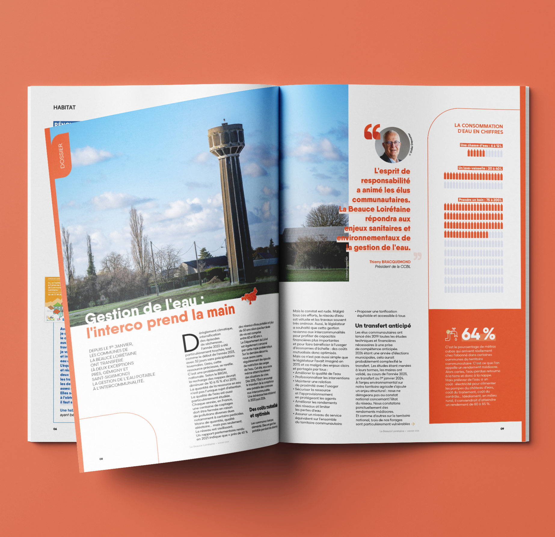 La CCBL souhaitait un support magazine capable de retranscrire les actions réalisées et les projets à venir. Capable, surtout, de parler au plus grand nombre avec, bien sûr, une attention particulière portée à la gestion de l’eau.