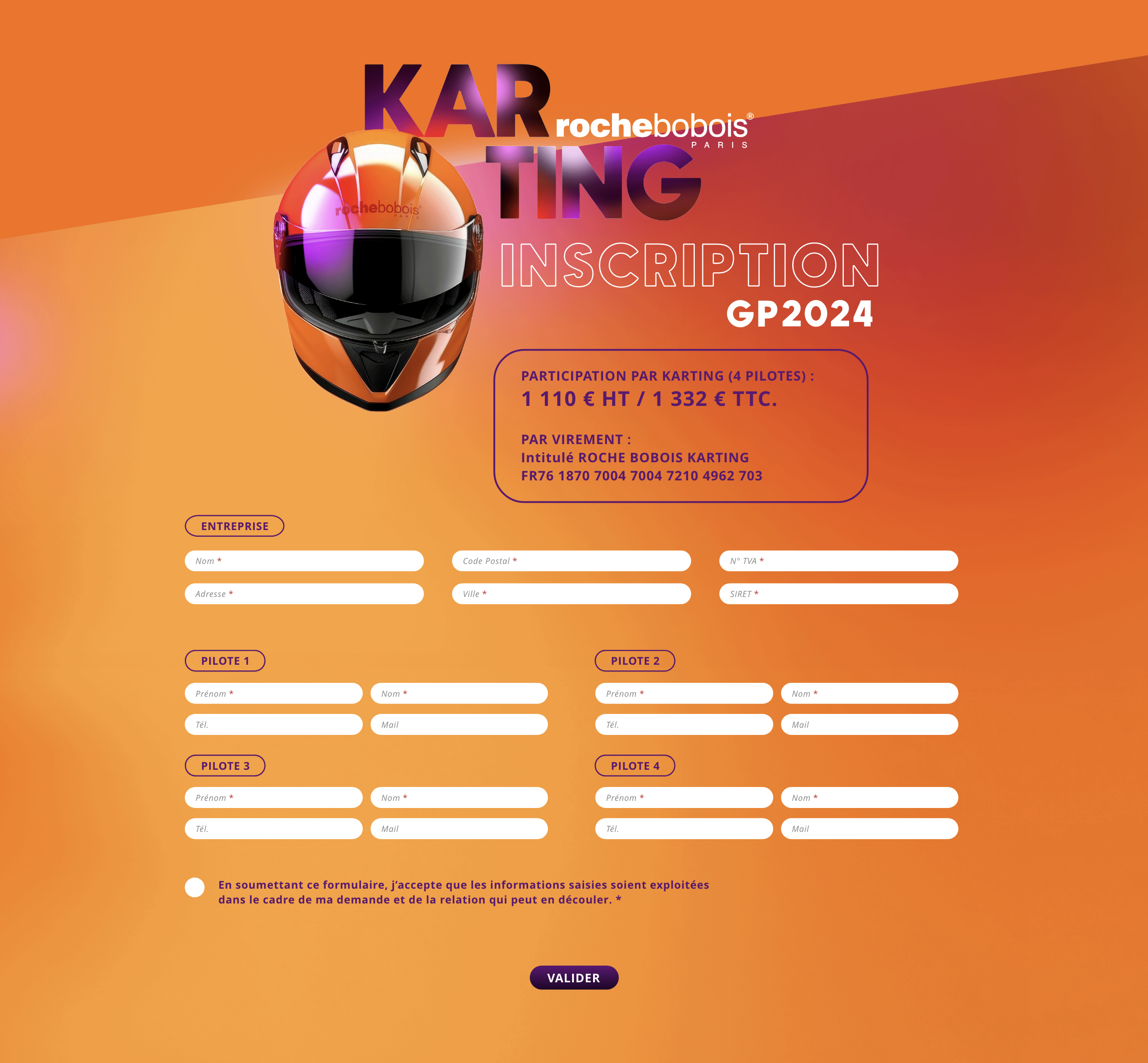 Pour communiquer sur son évènement sport mécanique, comme chaque année, Roche Bobois a laissé Women and Men faire ! Création du visuel générique, réalisation de l’invitation et du pass Pilote sans oublier le développement sur mesure du formulaire d’inscription.